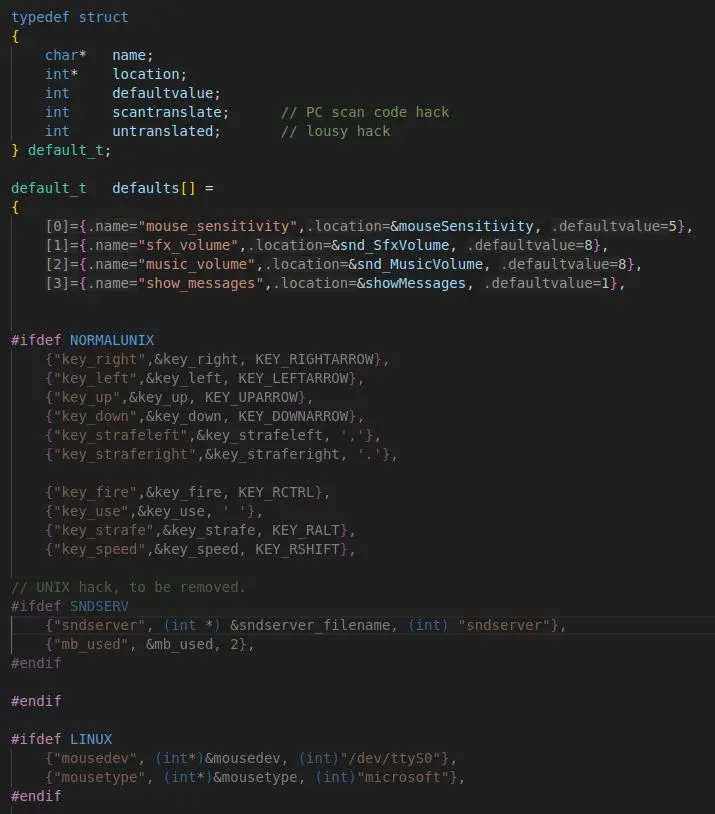 Il pezzo di codice incriminato è questo.Si tratta dell'inizializzazione della Struct che contiene le impostazioni di default.