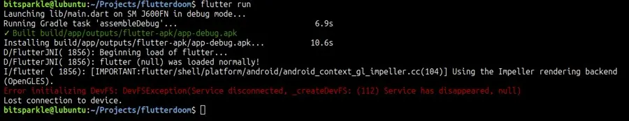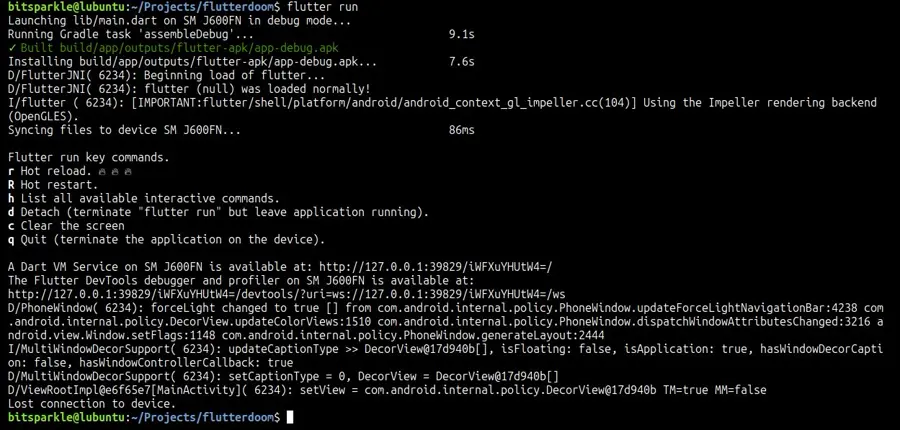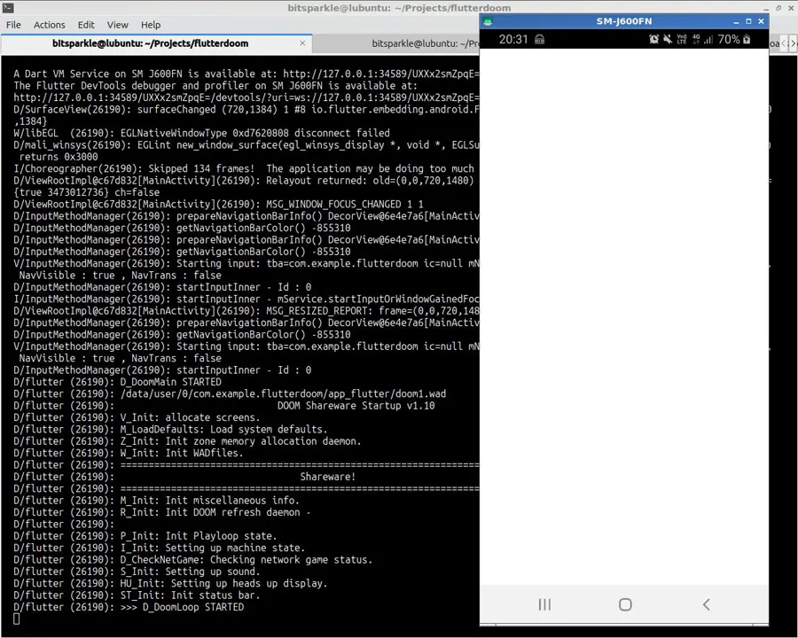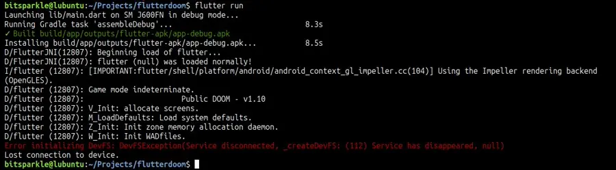 Alla fine il codice è stato compilato su Linux e il gioco è partito.Questa sarà la base da cui iniziare su Flutter.