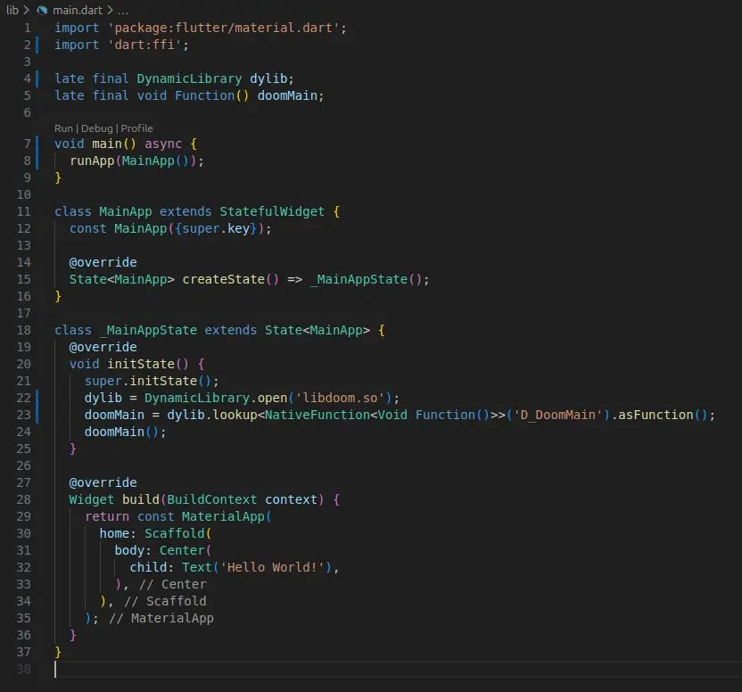 L'obiettivo finale è che venga creata la shared object libdoom.so, che è quella che verrà data in pasto a dart:ffi