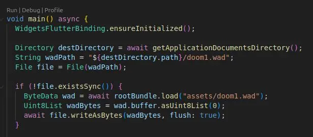 Attualmente, solo il WAD della versione shareware funziona. Con delle piccolissime modifiche al codice è comunque possibile caricare anche altri WAD, ma sarebbe bello che fosse l'utente finale ad aprirli sull'app. - Gestione dell'uscita dall'app